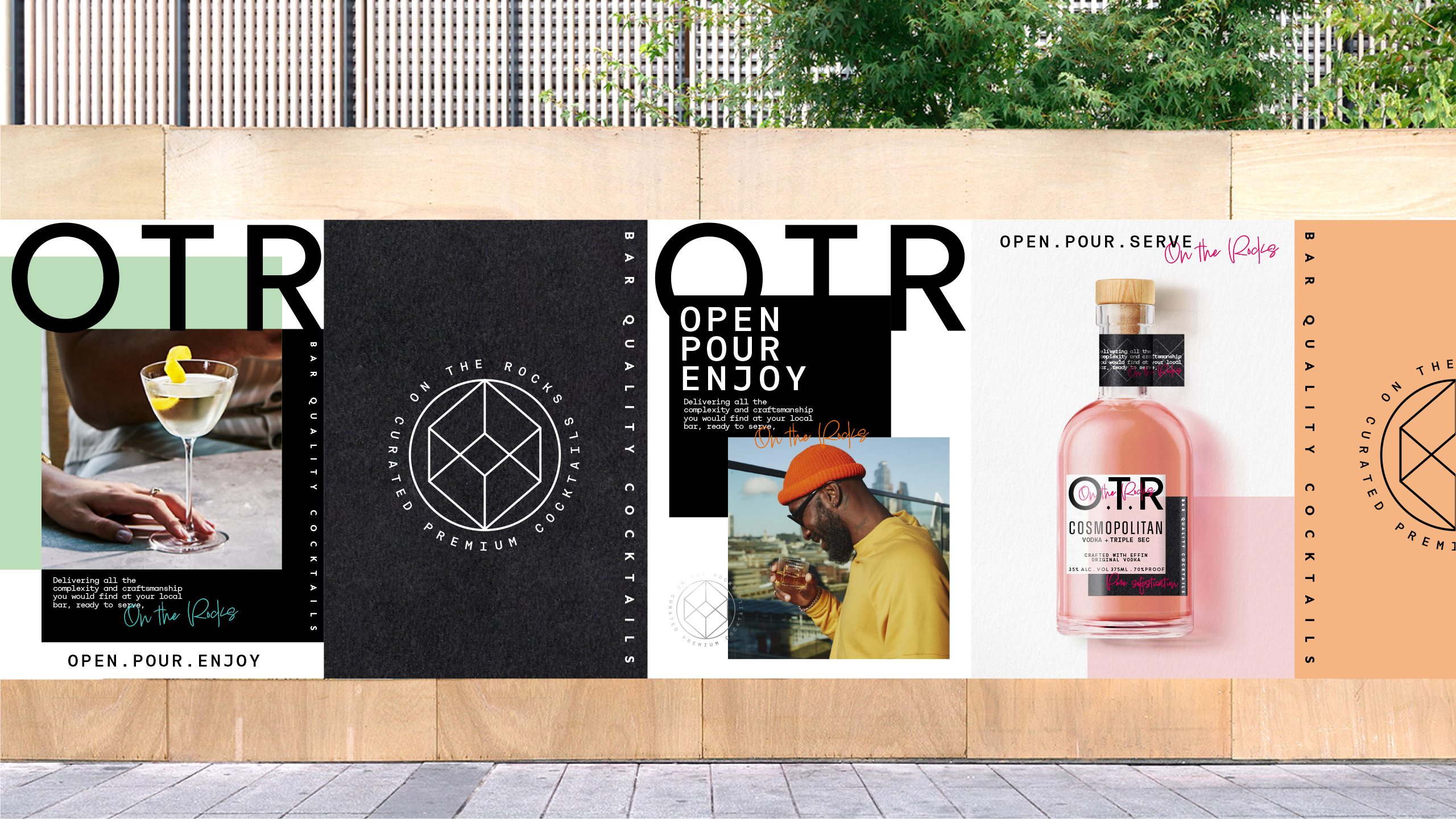 A design refresh for an existing brand. OTR had become very successful and unfortunately the original design, although temporary, was not reflective of the current brand and its ambitions. OTR needed to reflect the quality cocktail experience it was delivering, the experience, skill and care that went into artfully mixing each cocktail. A refined expression of classic cocktails for you to enjoy.
