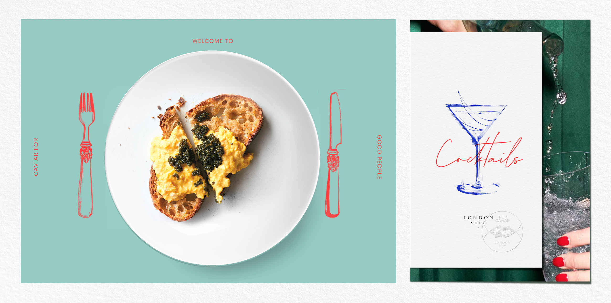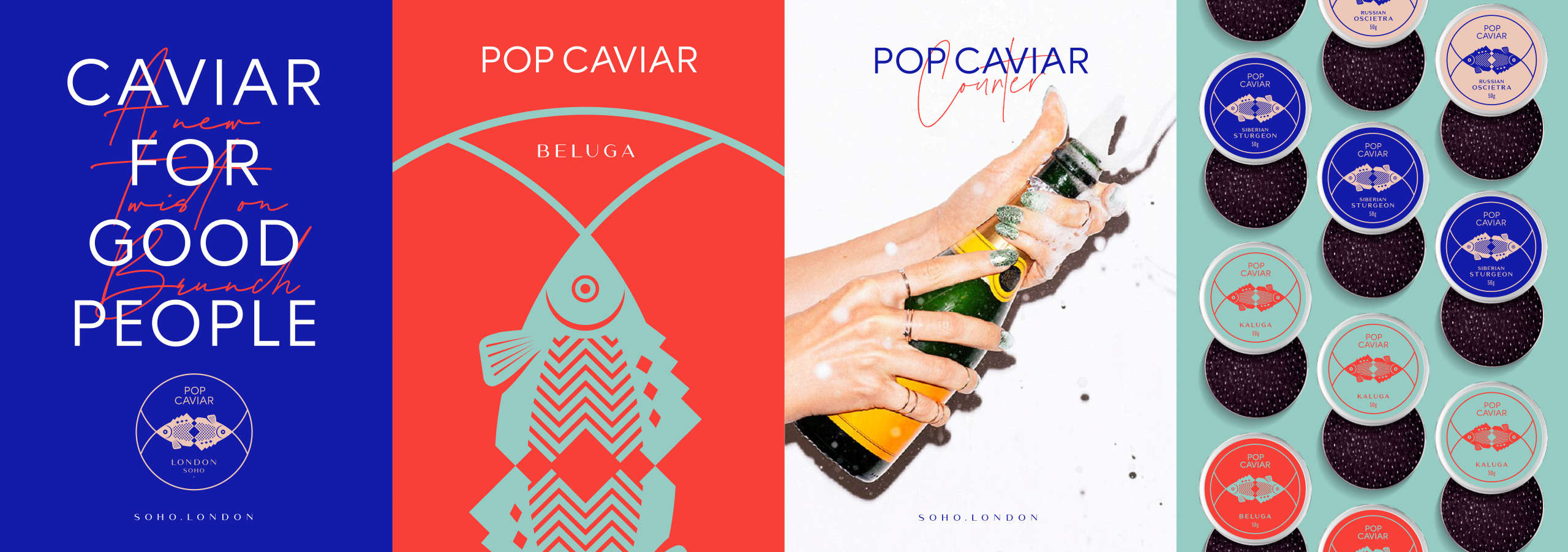 The inspiration behind Pop were its two founders, two young friends who just happened to own a sturgeon farm. They wanted a brand that celebrated caviar, making it more accessible so that everyone could enjoy a taste of luxury. The double headed fish represents their partnership and passion, combined with a bright colour palette and clean design, the results are a brand that really POPs.